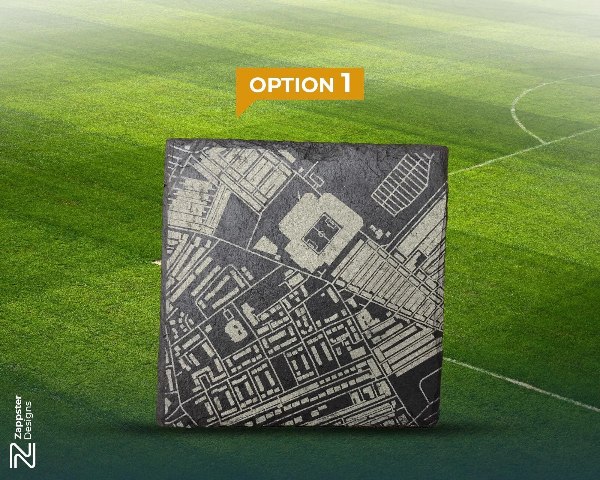 The coaster will feature a beautiful map design that represents the area around your favourite football stadium. The perfect way to add a touch of personality to your home or office.
