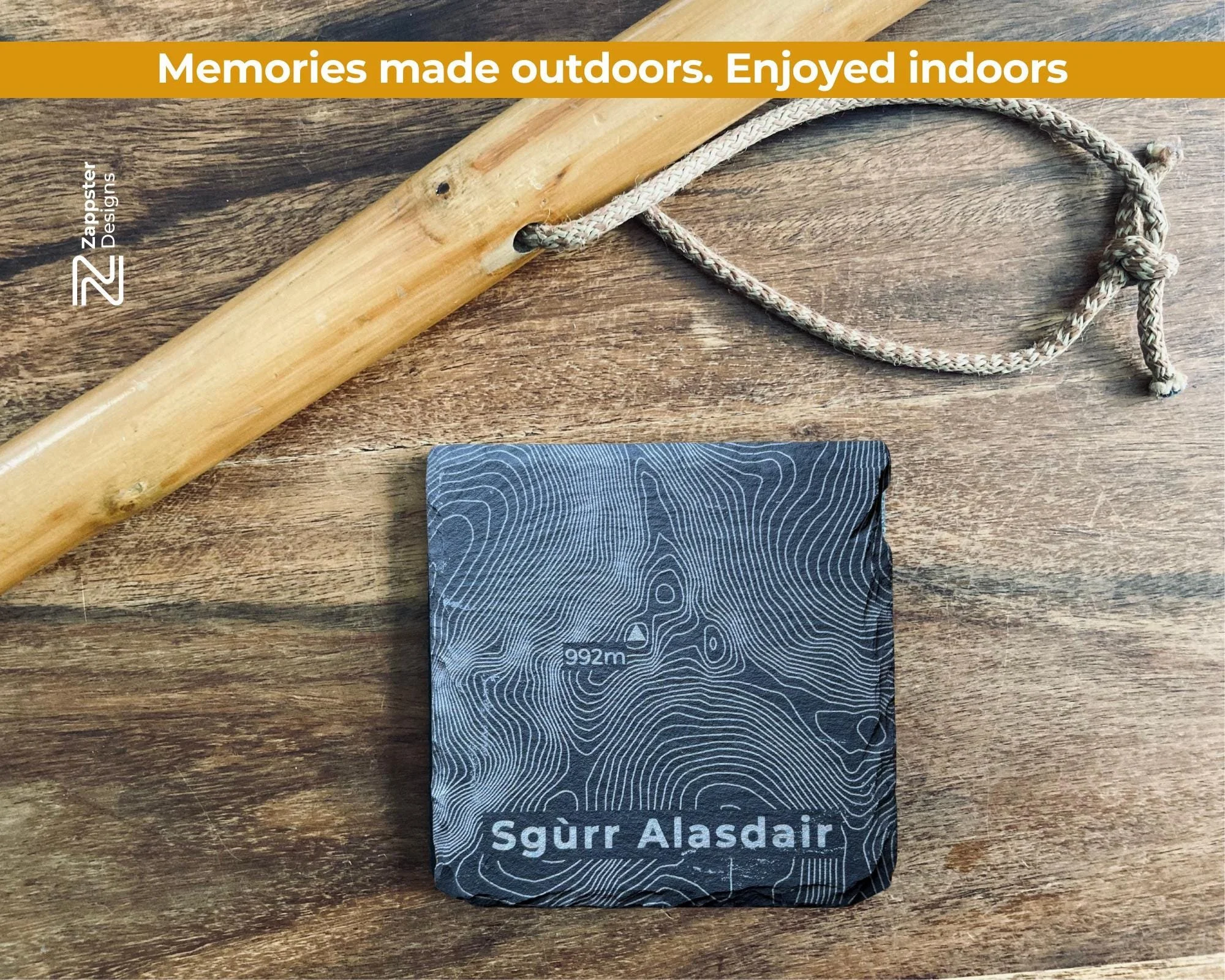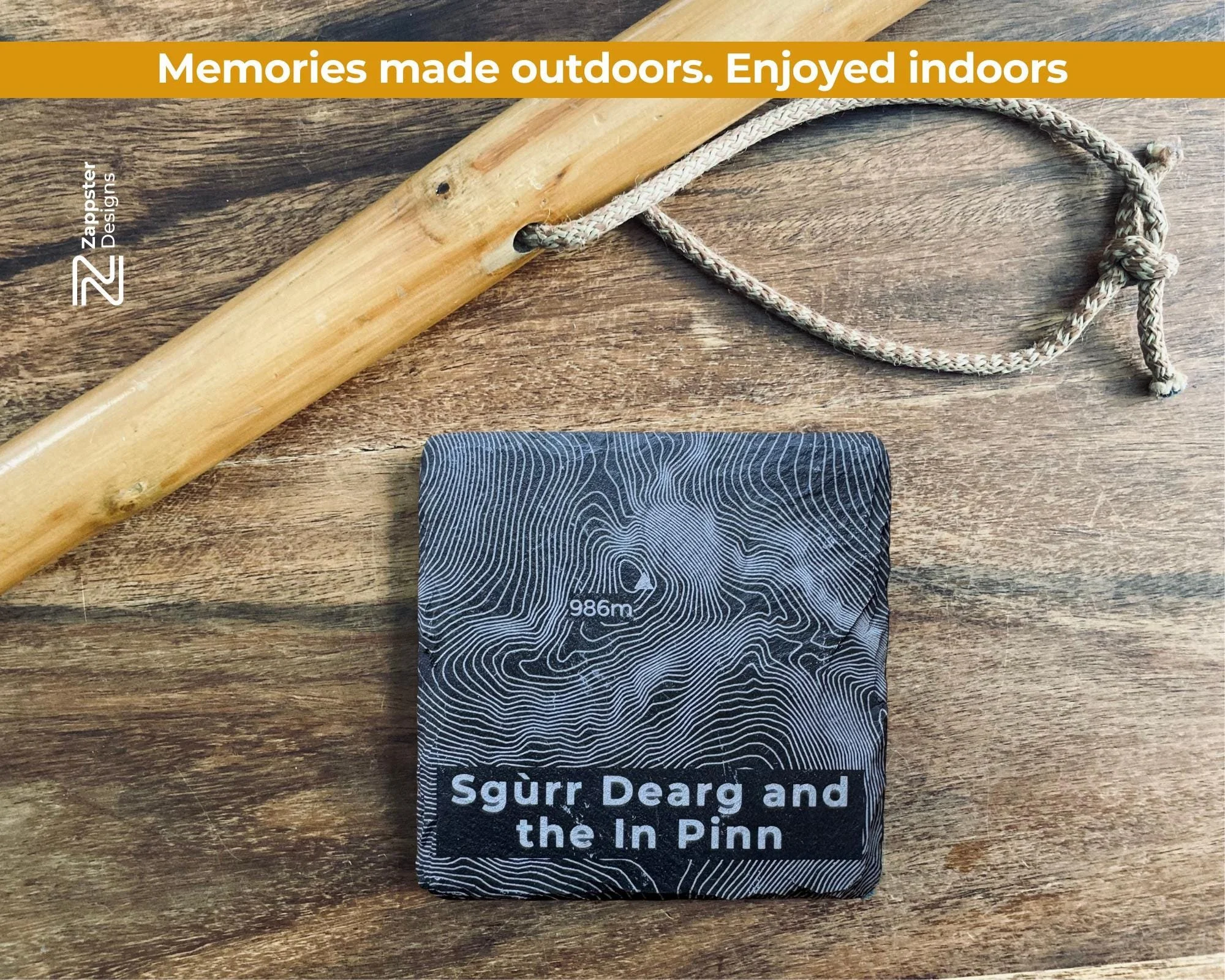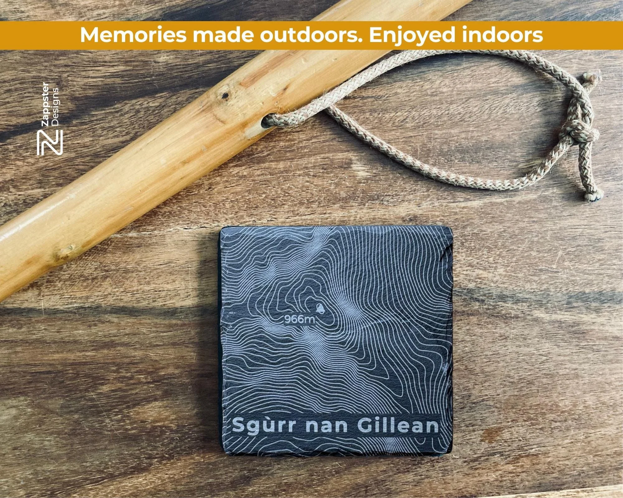 Each coaster is made to order in our West Lothian workshop. Every hill contour is laser engraved onto natural slate, hand finished and fitted with felt feet.
