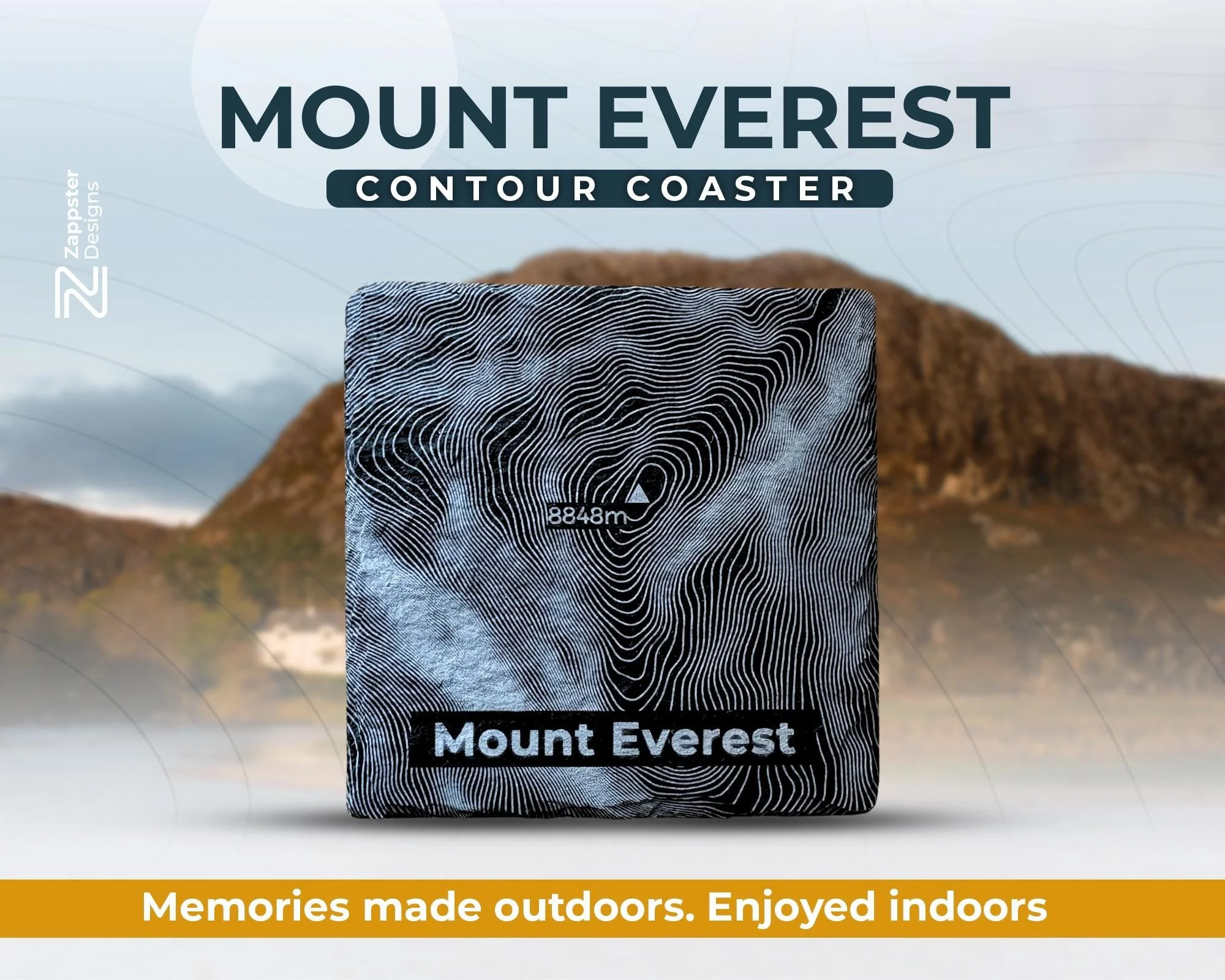 Options Coaster only — £7.99 One slate coaster engraved with the Mount Everest hill contour, with the mountain name beneath. Personalisation available on the reverse.