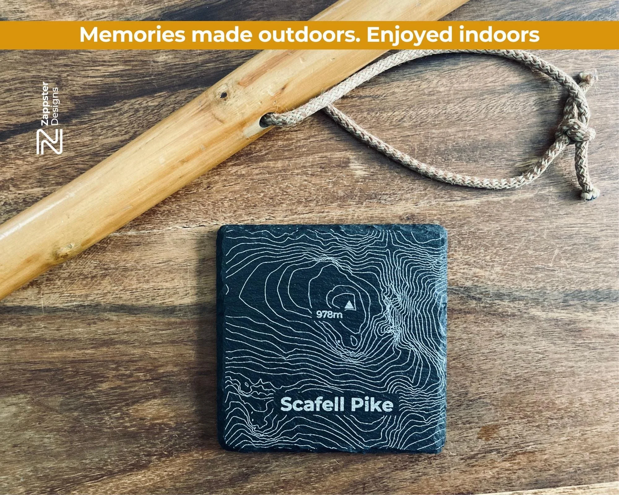Hello there! We’re excited to introduce you to our special slate coasters, lovingly crafted to feature the stunning contours of Scafell Pike, the highest mountain in England. These coasters measure around 10cm x 10cm, making them a perfect fit for any space.