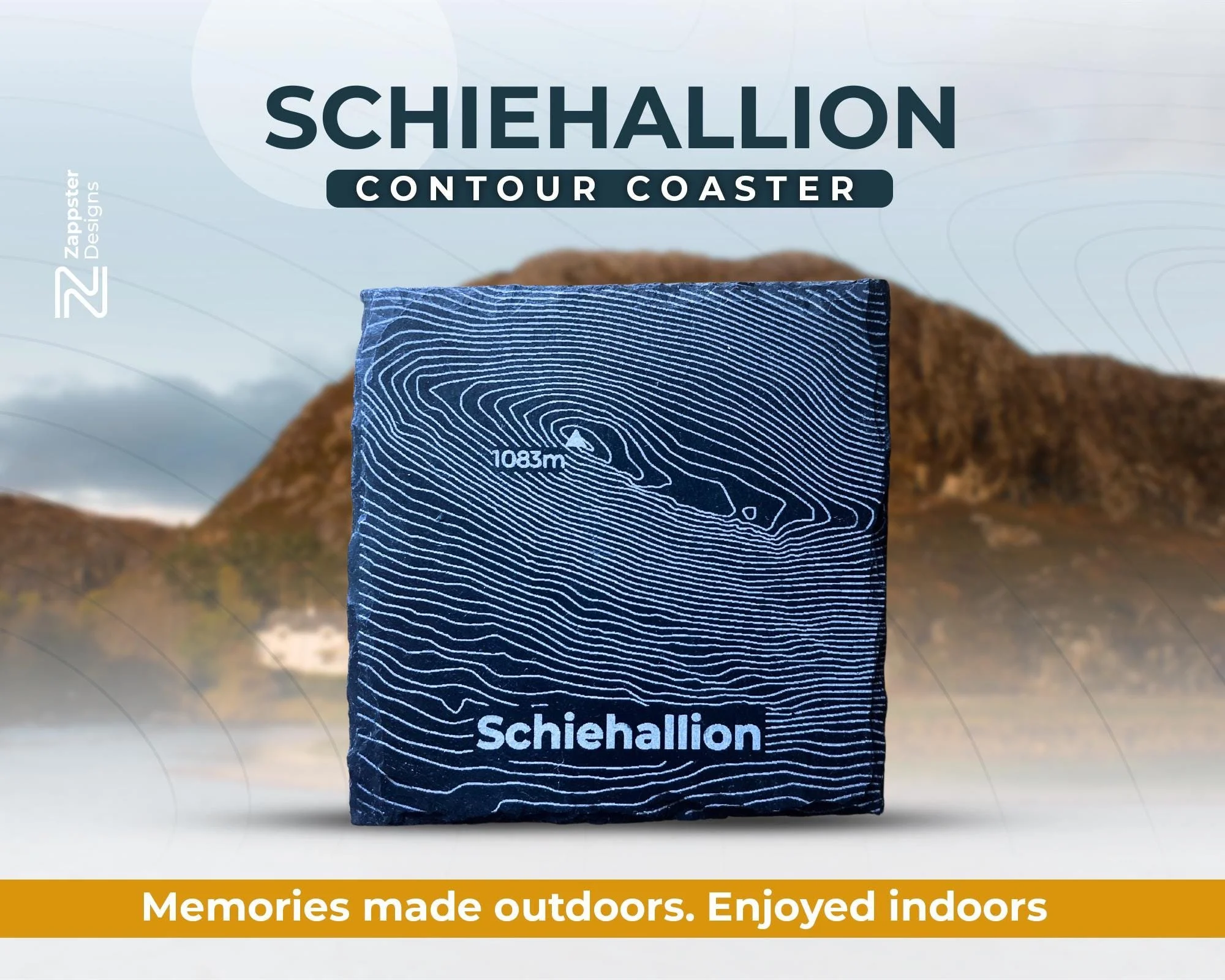Hello there! We’re thrilled to introduce to you our special slate coasters, lovingly crafted to capture the beautiful contours of Schiehallion. These coasters measure around 10cm x 10cm, making them a perfect fit for any space.