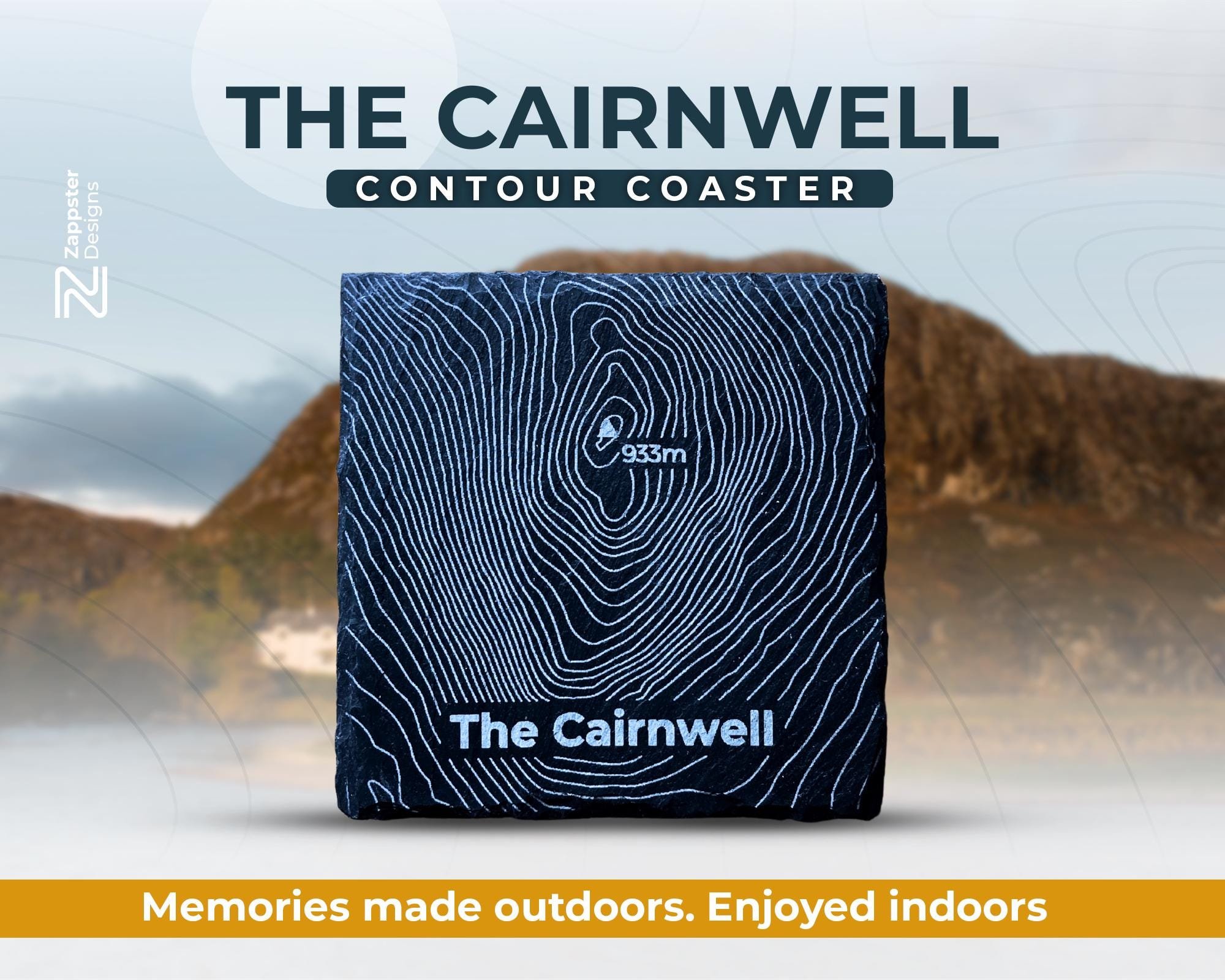 Hello there! We’re thrilled to introduce to you our special slate coasters, lovingly crafted to capture the beautiful contours of The Cairnwell. These coasters measure around 10cm x 10cm, making them a perfect fit for any space.