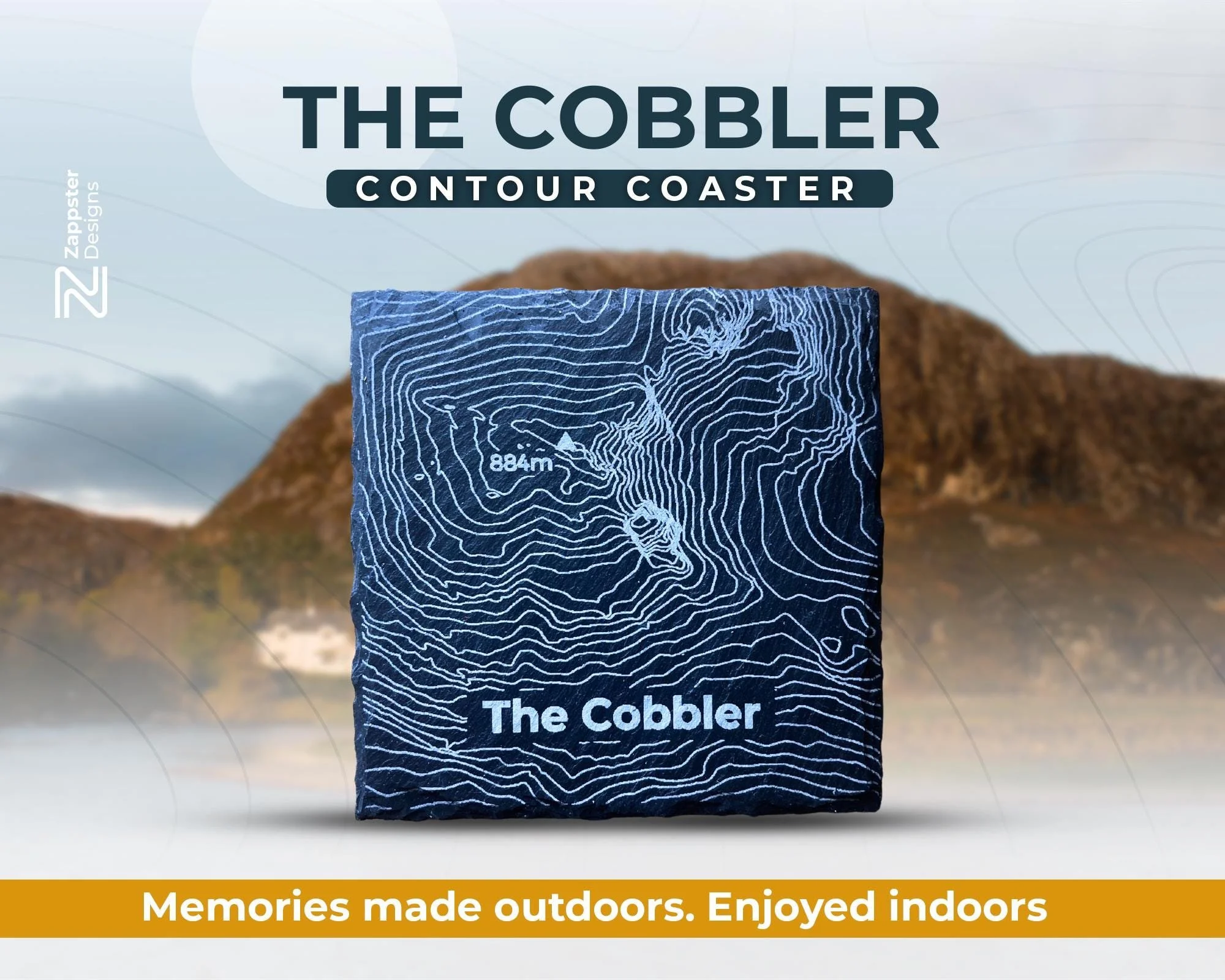 Hello there! We’re thrilled to introduce to you our special slate coasters, lovingly crafted to capture the beautiful contours of The Cobbler. These coasters measure around 10cm x 10cm, making them a perfect fit for any space.