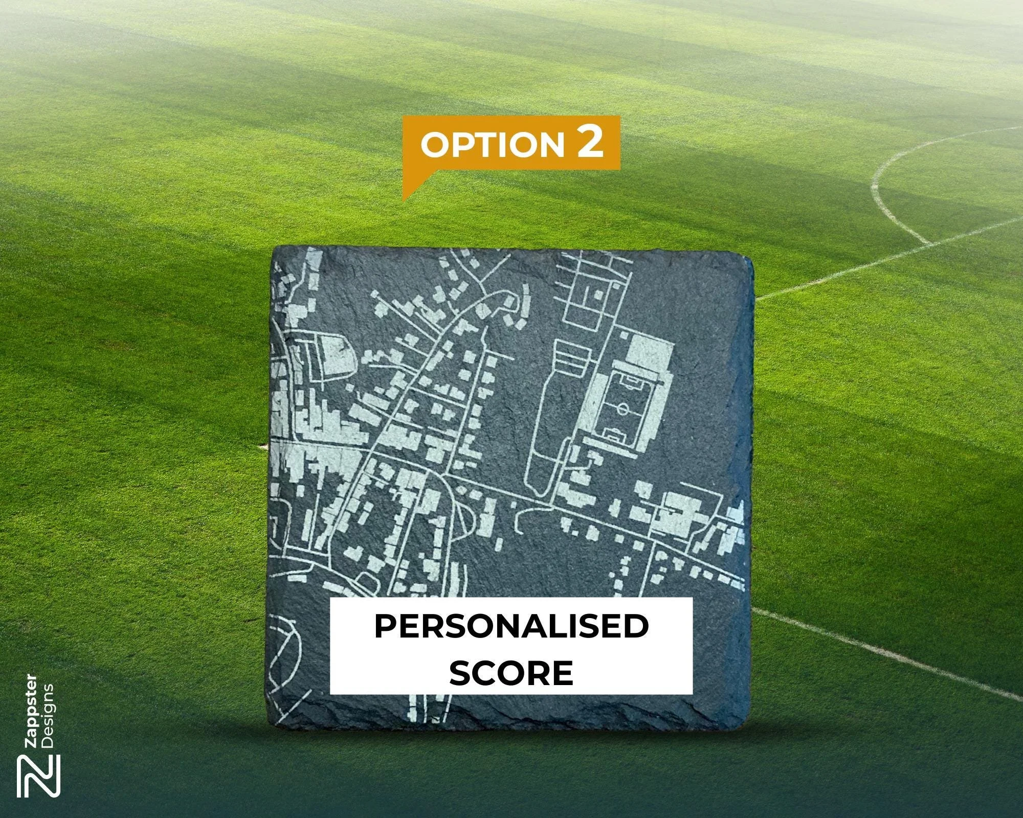 Ross County football stadium map on a slate coaster - fully customisable with a memorable football score or keep it simple with the name of the stadium and its capacity.