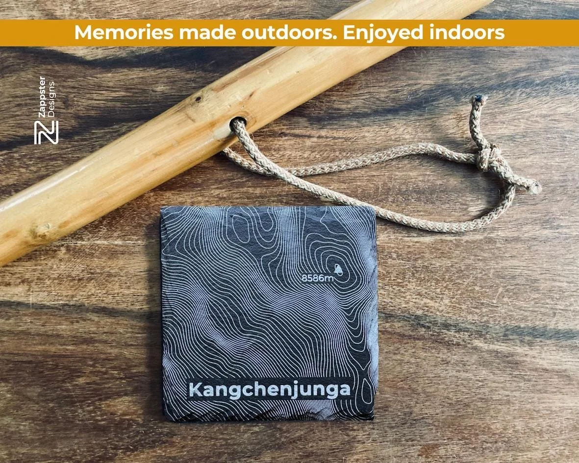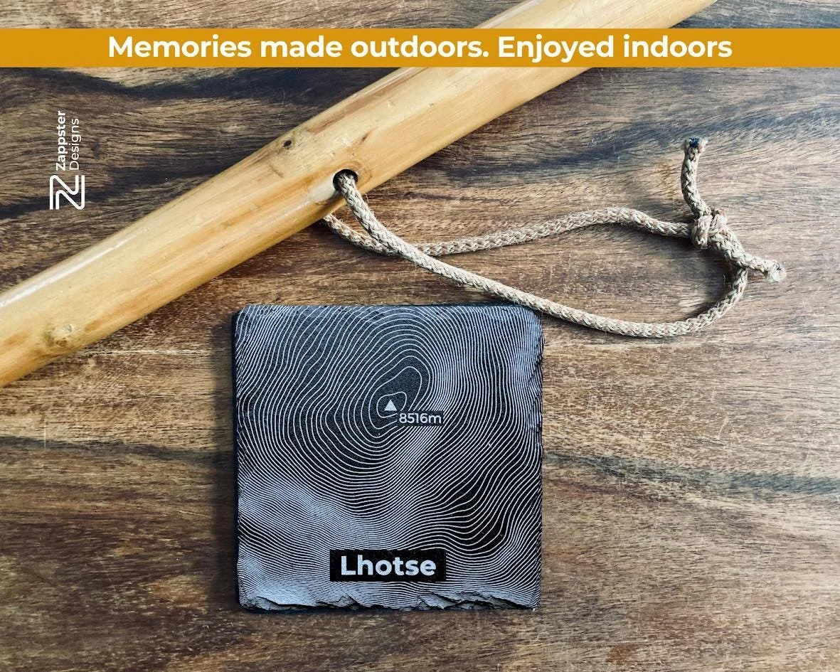 This coaster set brings together the world's four highest peaks — Mount Everest, K2, Kangchenjunga and Lhotse — each one laser engraved with its precise hill contour onto natural slate in our at-home Scottish workshop. Four summits that have defined mountaineering history, captured the imagination of every climber and adventurer, and represent the absolute limit of what the natural world — and the human spirit — can reach.